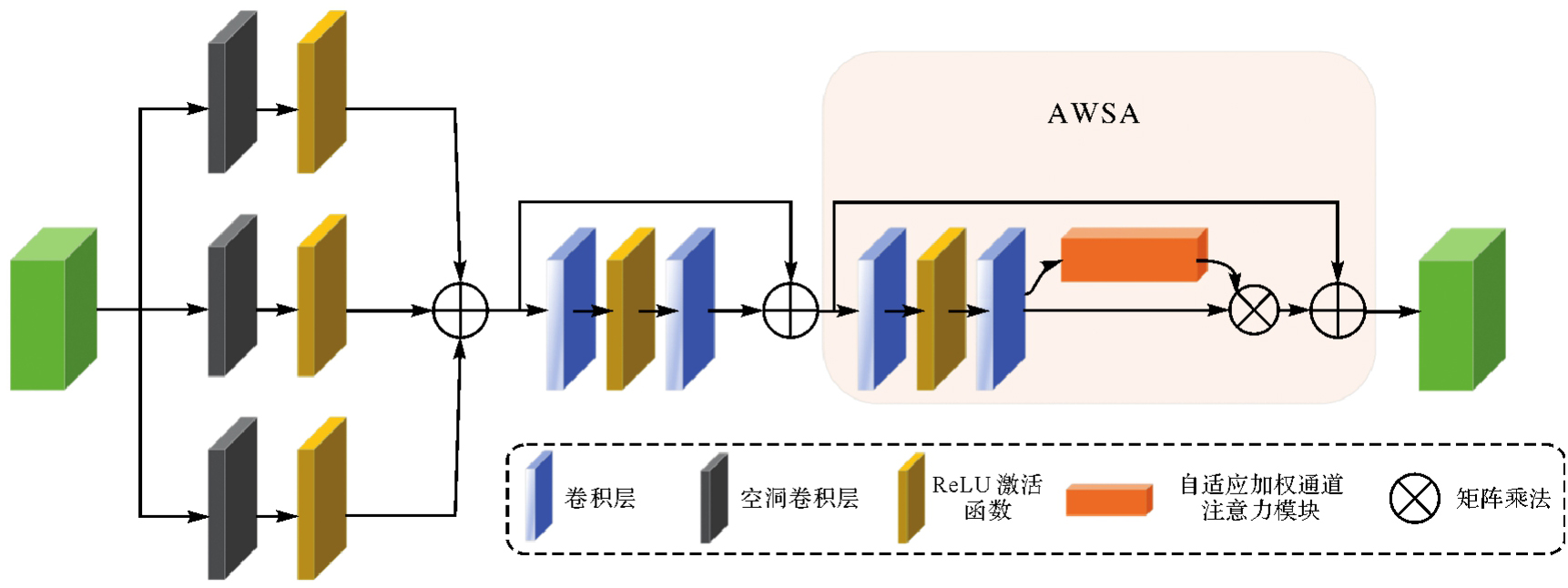 | MAWSA | Dconv(1,3,5)-ReLU | H×W×c | 3×3,256,Stride1,dilation(1,3,5) | H×W×256 |