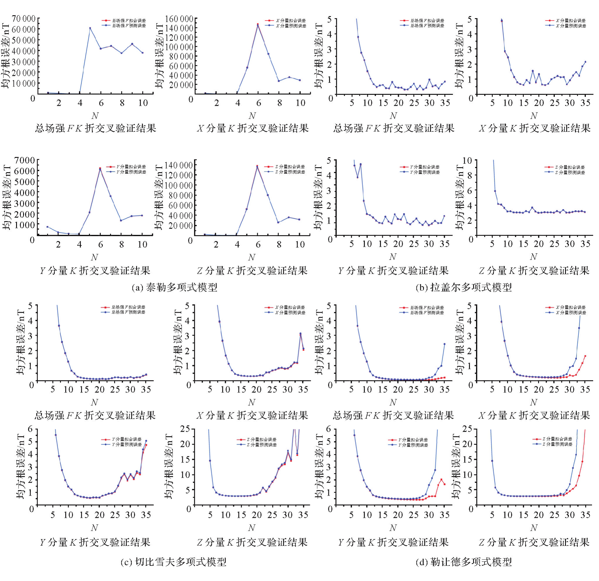 | 多项式模型 | 地磁分量 | 最佳截止阶数 | 平均拟合误差/nT | 平均预测误差/nT |