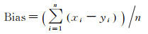 式中,Bias为偏差;Mad为绝对差; RR为相关系数; RBias为相对偏差;n为样本数,x和y分别代表IRI2016模型电子密度、中频雷达电子密度,