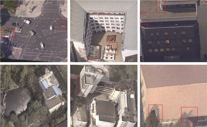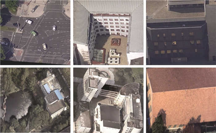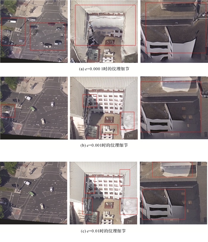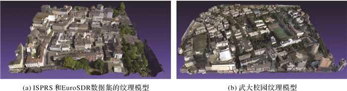 本文使用两个数据集验证所提算法在多视纹理映射中的优越性。第1个数据集是ISPRS和EuroSDR提供的基础数据集,其对应的纹理模型如图 15(a)所示,本文将其命名为M1模型;第2个数据集为武汉大学校园的倾斜影像,其对应的纹理模型如图 15(b)所示,本文将其命名为M2模型。