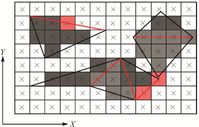| 图 3 基于LEF的三角面元栅格化 Fig. 3 LEF-based triangle rasterization |