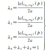 式中,(f0, f1, f2)为三顶点处的属性值;(w0, w1, w2)为三顶点处的剪裁坐标。像素p的重心坐标λ0, λ1, λ2)可以通过LEF计算得到