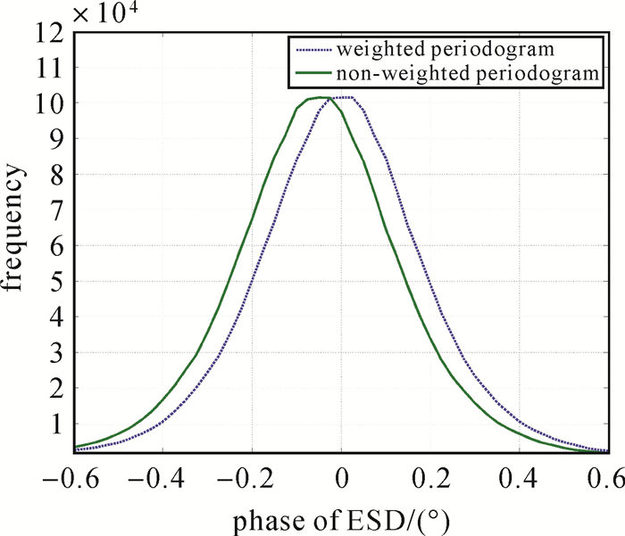 | 图 9 加权与等权周期图估计方法差异 Fig. 9 Comparison between weighted and nonwei-ghted periodogram |
