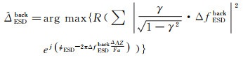 由于多普勒中心基线ΔfESDfor和ΔfESDback在重叠区域发生较大变化,如果采用1.2节提出的加权周期图估计方法,需要在式(1)的基础上,顾及多普勒中心基线变化引起的像素权重差异,此时残余偏移量估计公式应调整为