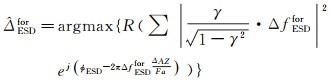 鉴于增强谱分集干涉图统计模型缺失,通常认为失相干噪声为零对称分布,理论上不会对增强谱分集相位产生系统性的误差,DLR等研究单位一般通过周期图方法对几何配准后的残余偏移量ΔAZ进行优化估计,如式(9)所示