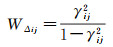 式中,W∈Rm×m为残余偏移量列向量相对应的权阵,由于雷达影像之间存在相干性,增强谱分集估计结果之间并不独立,因此式(16)需顾及残余偏移量L之间的相关性。鉴于相干系数必然存在估计误差,协方差矩阵将会产生非正定的问题[37-39],本文退而求其次,忽略干涉图之间的相关性,直接假定残余偏移量相互独立,其权重可以根据式(1)推导出,如式(19)所示