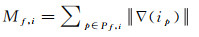 式中,Pf, i为f在i的影像上的投影所占的像素集合。若三角面的投影区域不足一个像素,则按其投影重心对梯度幅值进行采样,再乘以其投影面积。