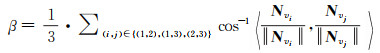 式中,〈, 〉表示向量内积。Nv1、Nv2和Nv3两两间的平均夹角β为