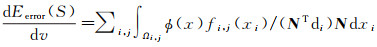 式中,fi, j(xi)=∂2M(xi)DIj(xj)DΠj(x)di;di为由i对应的相机中心指向x的向量;∂2M为M关于第2张影像(即从视图对应的影像)的导数,D表示对应函数的雅可比矩阵。