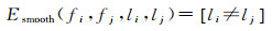 2.1 主视图选取构建关于三角面的最佳视图的马尔科夫随机场,为网格的每个三角面fi分配标签li,以此为每个三角面选取最佳视图,并将其作为用于计算影像一致性的视图对的主视图。为此,定义能量函数