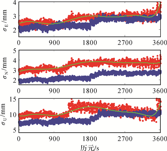 (1) 忽略交叉相关性和时间相关性,估计每颗卫星每个频率相位和伪距观测值精度,并用于高度角建模;
