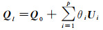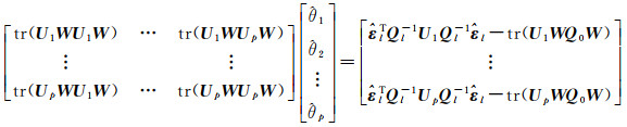 式中,Q0表示VC矩阵的已知部分,例如在迭代中固定的部分元素;θi为待估方差和相关系数元素,对应已知的系数矩阵Ui,总共有p个待估元素。由于不同的VCE方法是等价的,省去推导直接给出VCE法方程[23]