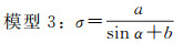 式中,σ为标准差。这种高度角模型过于简单,并不能很好地体现观测值精度与高度角的关系,尤其是忽略了北斗GEO/IGSO/MEO 3种类型卫星观测值精度与高度角关系的差异。本文通过不同类型卫星观测值与高度角的趋势关系,对以下3种高度角加权模型当中的系数进行拟合,得到符合北斗卫星特性的模型