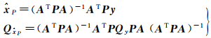 取任意正定对称矩阵P作为权矩阵进行LS平差,得LS估值及其协方差阵[1]为