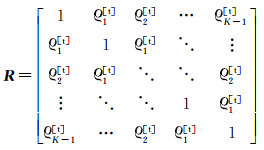 在静态观测较短的时间内,卫星高度角和观测环境变化微小,可认为这段时间内所有单个历元的待估VC矩阵相同。但多历元的待估VC矩阵将引入时间相关系数,对任意两个历元间隔的所有频率的伪距和相位观测值分别引入时间相关系数,则连续K个历元观测值的待估VC矩阵为