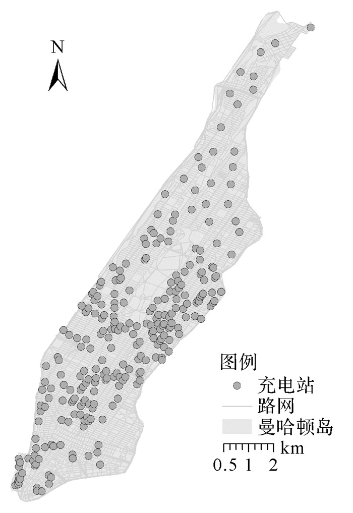 | 图 5 曼哈顿的充电站分布 Fig. 5 The distribution of charging stations in Manhattan |