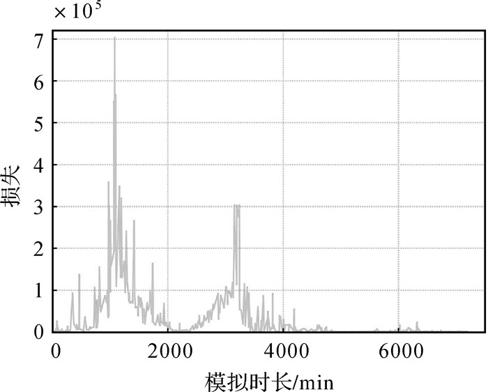 2.3 试验结果与分析 2.3.1 DDQN结果分析采用上述参数,进行DDQN模型训练,模型训练损失变化如图 6所示。随着训练时长的增加,模型损失波动较大,但整体呈现下降的趋势,最终收敛于1000左右,模型训练完成。