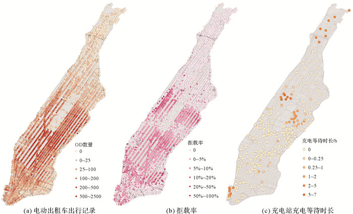 | 图 8 电动出租车运营结果的空间分布 Fig. 8 Spatial distribution of the electric taxi's operation results |
