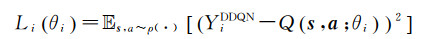 基于DDQN模型,定义神经网络损失函数L(θ)如下,并采用小批量梯度下降法在每次迭代中更新神经网络参数[18]