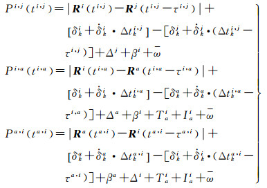 式中,Tai和Iai分别表示对流层和电离层延迟,其他符号的含义同式(1)。