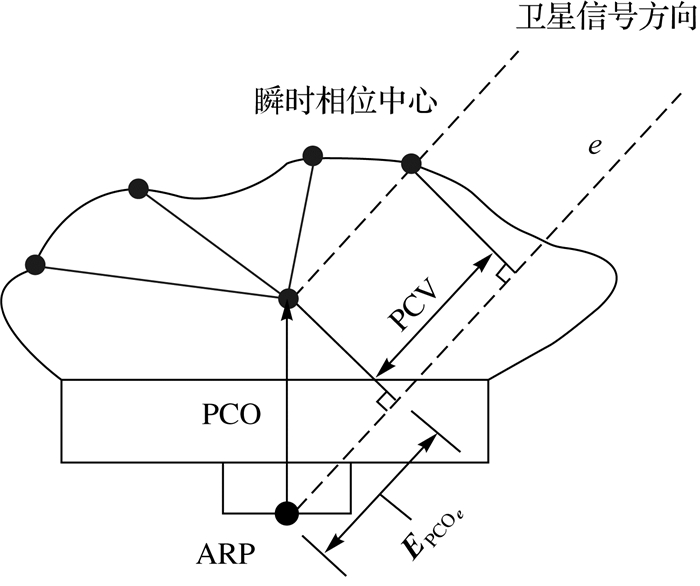 | 图 1 天线相位中心偏差和天线相位中心变化 Fig. 1 Antenna phase center offset and antenna phase center variation |