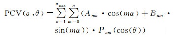 式(10)是4项球谐函数的代数和,因此消除了0阶项,在构造设计矩阵时,需要从n=1开始。此外,为了满足PCV在天顶处值为零的定义,需要附加约束条件: