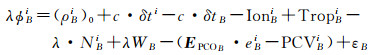 2.1 数学模型记基准天线B对i星的单频载波相位观测方程