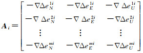 由于天线在快速转动和摆动,在相邻的两个历元间(< 10 s),多路径噪声可以视为相同,因此通过历元间求差可以有效消除多路径。最终得到历元差分观测方程为