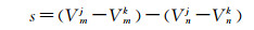 类似的,可建立测站m与卫星k间、测站n与卫星j间、测站n与卫星k间模型参数计算值Vmk、Vnj、Vnk的表达式,则双差观测值残差s可由上述模型参数计算值表达如下