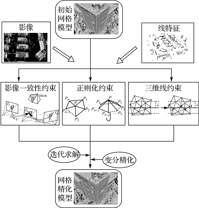 1 带线约束的摄影测量网格变分精化算法本文算法流程如图 1所示。