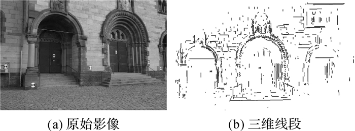 | 图 4 原始影像及其三维线段 Fig. 4 Original image and line segments |