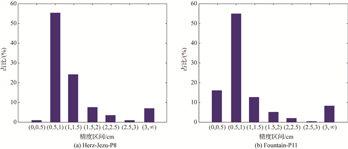 | 精度 区间/cm | Herz-Jezu-P8 | Fountain-P11 | |||