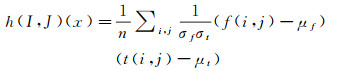 式中,i、j是匹配窗口内像素点的坐标;n是匹配窗口内像素点的个数;f(i, j)和t(i, j)是两张影像对应像素的像素值;μf和μt是匹配窗口内像素值的平均值;σf和σt是匹配窗口内像素值的标准差。
