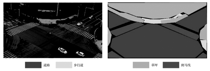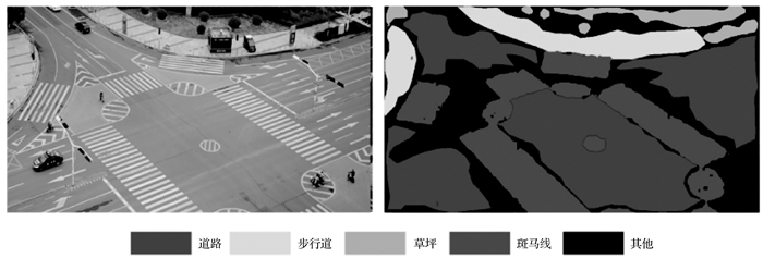 | 图 3 交通视频图像和语义分割标签数据 Fig. 3 Traffic video image and its semantic segmentation label data |