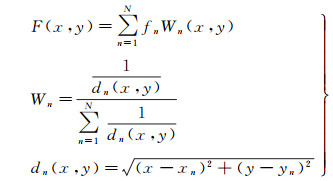 式中,F为图像融合函数;点(x, y)为对应点(xn, yn)在对角线方向的重叠区域边界点;fn为像素灰度值;Wn为权重值;dn是点(x, y)与点(xn, yn)之间的欧氏距离。