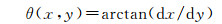 步骤3:根据式(5)计算交通视频图像和对应区域的正射影像的边缘角度θ(x, y)