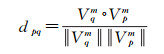 式中,Vqm=Vq-Vq;Vpm=Vp-Vp;Vq是待匹配的正射影像直方图特征;Vp是交通视频图像的直方图特征;dpq代表待二者之间的相似性程度,数值越高则两幅图像的相似性越高。