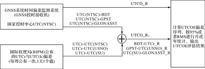本文采用基于UTC(NTSC)和BIPM时间公报的UTCOE评估方法,原理如图 2所示。