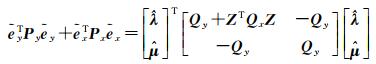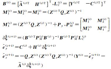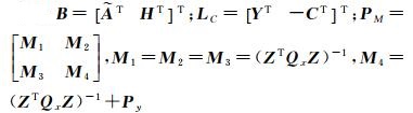 式中,y和ey分别是n×1的观测向量和误差向量;A和EA分别是n×m的系数矩阵和误差矩阵;x和ex=vec(EA)分别是nm×1的观测值向量和误差向量;ξ是m×1的参数向量;符号E和D分别表示期望和方差;σ02表示未知的单位权方差;Qx和Qy分别是nm×nm和n×n的协因数矩阵。在常规模型中,系数矩阵没有常数元素或(和)重复元素,不具有结构特性,同时也不对参数附加额外的等式约束。