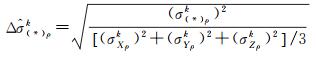 式中,v(*)ρk表示新息向量中应答器坐标参数的任一对应项;σvXρk、σvYρk、σvZρk分别表示预测残差协方差矩阵对角线上应答器坐标参数的对应项。