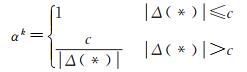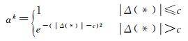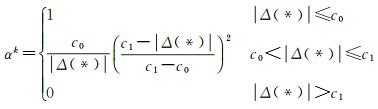 式(12)、式(13)中,常数c一般根据经验取值。不同于三段自适应因子函数,两段自适应因子函数和指数自适应因子函数均为非零函数。