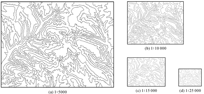 | 图 5 实际尺寸对比下的等高线多尺度表达 Fig. 5 Multi-scale representation of contours under correct size contrast |