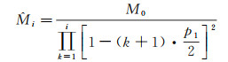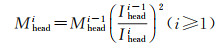 式中,Mheadi与Mheadi-1表示地理要素经过头部分割后的第i层次与第i-1层次的地图比例尺分母,Iheadi与Iheadi-1代表这两个分裂层次所对应的要素频域信息量。例如,当i=1时,第1次分裂的地图比例尺分母Mhead1可由原始地理要素的比例尺分母Mhead0以及与二者相对应的频域信息量求得,其他分裂层次依此类推。根据分裂比例特征向量的定义,比例为pi的频率占据了1-pi的形状信息,因此可以得出两个相邻层次的信息量比值Iheadi/Iheadi-1=1-pi。据此,结合式(12),即可得到地理要素的各个层次所对应的地图比例尺分母Mi
