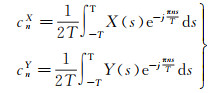式中,j为虚数单位且j2=-1;n为傅里叶展开项数;T为函数的周期;{ejπns/T}n∈Ζ为一组傅里叶正交基;傅里叶系数cnX、cnY分别为