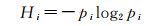 1.2 地理要素的信息量对于信源H,其香农(Shannon)信息熵表示为[20]