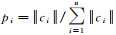 图 3中,地理要素的初始状态将能够近似表达原始要素的n个傅里叶描述子作为信息总量,因此p0的默认值为1。在接下来的每次分割中,下一层次的头部仅保留上一层次傅里叶展开项数中20%的组成部分,同时包含其80%的信息内容,所以,其分裂比例特征向量Vp=[1.0 0.2 0.2 0.2]。而在一般情况下,在地理要素的信息向量IV中,各个pi的值都各不相等。本文设计了一个近似模型对除p0以外的每个pi值进行估计,如式(9)所示