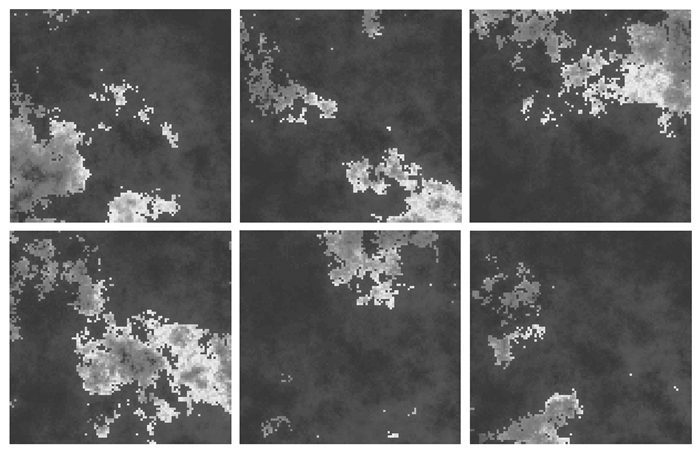| 图 2 6个端元对应的仿真丰度图像 Fig. 2 The simulated abundance maps of six endmembers |