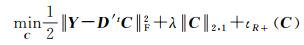 式中,X为真实丰度矩阵;C为行稀疏的真实丰度矩阵;
