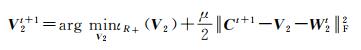 可通过将V2的解投影到非负坐标轴上来考虑ιR+项,得到V2的更新公式