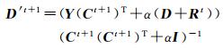 (5) 利用式(22)更新D′t+1。